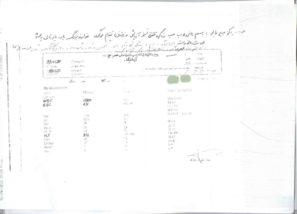 اما معجزه درمان در تاریخ 21 /11/93 رخ داد و آن اینکه پدر بیمار باارسال فکس آخرین آزمایش خبردادند که پلاکت بیمار به 272 هزار رسیده است .