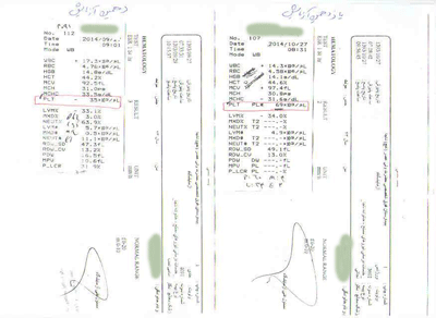 درتاریخ 27/9/93 پلاکت بیمار به 35 هزار رسیده که باعث خوشحالی خانواده بیمار و قوت قلب آنان می شود .